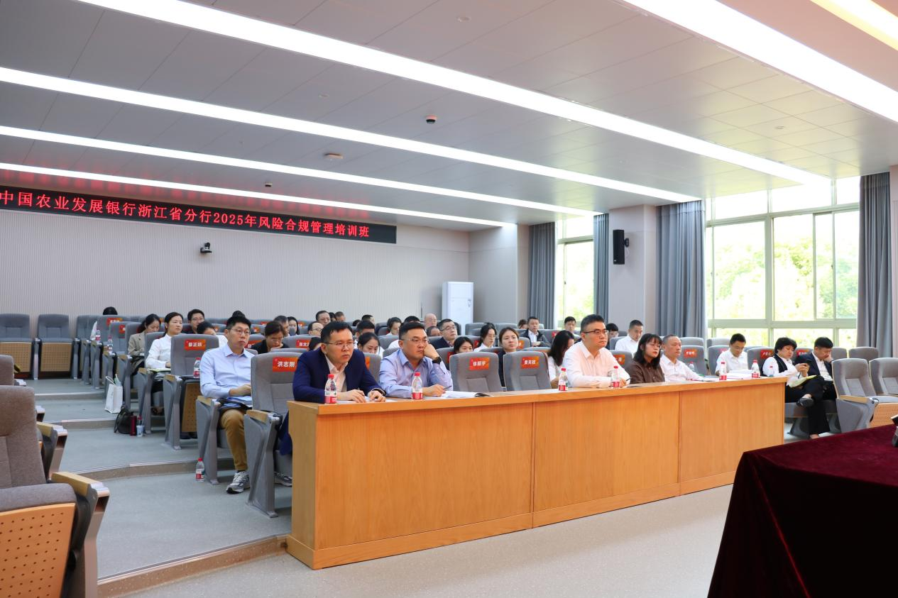 朱旭明代表浙江财经大学致辞。他首先对农发行浙江省分行的信任与合作表示感谢,详细介绍了学校在金融学科建设、金融人才培养及金融科技领域的优势成果 ,依托深厚的学术积淀与实践资源,学校已为金融行业输送大批专业人才。他强调,风险合规管理是金融行业稳健发展的 “生命线”,此次培训班聚焦行业核心需求,整合优质教学力量,希望学员们能充分利用培训机会,夯实理论基础、提升实践能力,将所学知识转化为推动工作的实际效能,为农发行风险合规工作注入新动能。