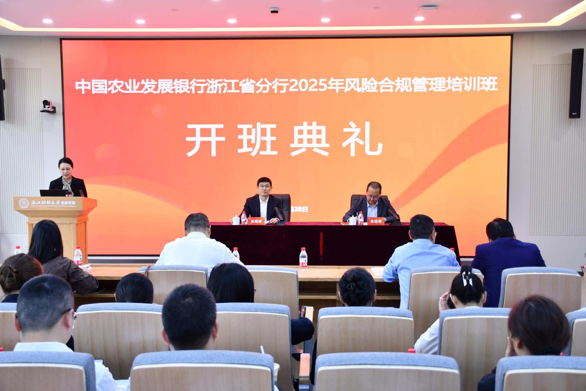 10月28日,由浙江财经大学盈阳金融科技学院承办的“中国农业发展银行浙江省分行2025年风险合规管理培训班”,于浙江财经大学3号楼202 报告厅正式开班。学院党委书记朱旭明,学术副院长喻贞,中国农业发展银行浙江省分行内控合规处处长巫晓峰,培训班班主任王婧及全体学员参加开班仪式。开班仪式由学术副院长喻贞主持。