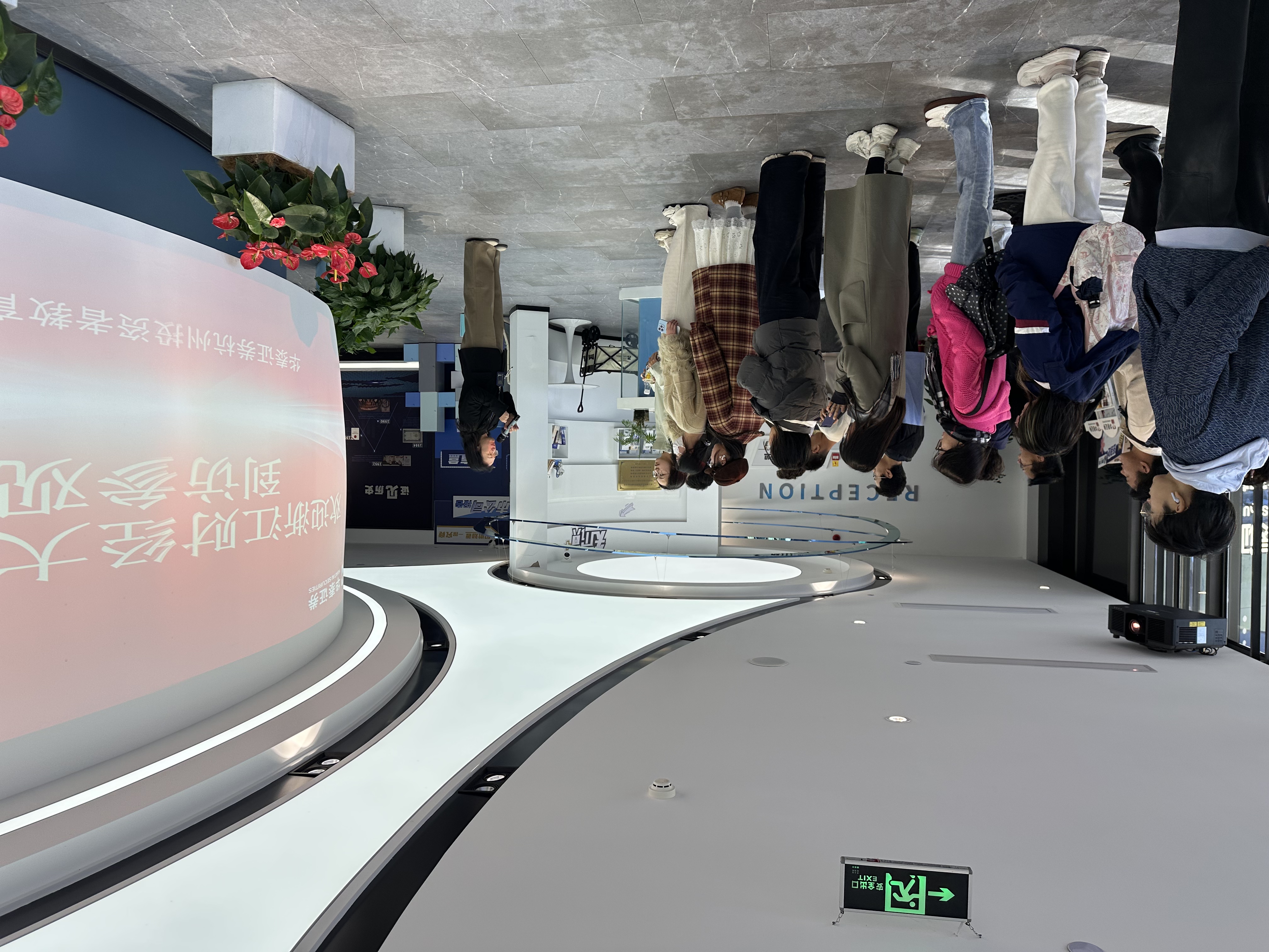 华泰证券浙江分公司投资者教育岗凌雨虹全方面带领同学们参观华泰证券投资者教育基地,通过历史回顾区、风险警示区、投资必知区、互动体验区充分接触证券投资行业,感受金融反哺实体企业、反哺社会的意义。