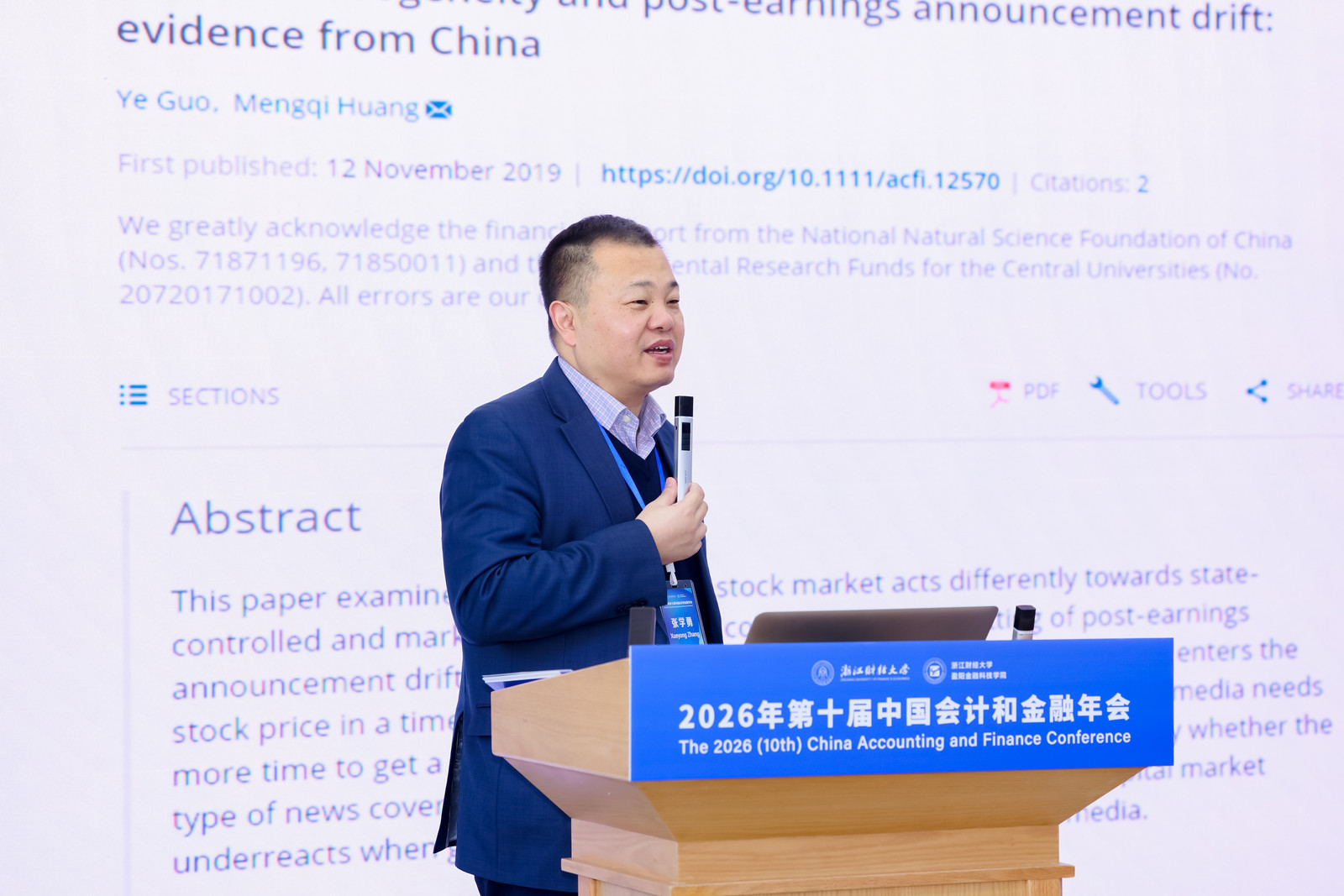 1月10日,第十届中国会计和金融年会(China Accounting and Finance Conference,CAFC)在浙江财经大学成功举办。本次年会由浙江财经大学主办,浙江财经大学盈阳金融科技学院承办,得到中央财经大学中国资产管理研究中心、中央财经大学高等学校学科创新引智基地、中南财经政法大学金融学院·数字技术与现代金融学科创新引智基地及北京聚源锐思数据科技有限公司(RESSET)、浙江省哲学社会科学领军人才培育专项课题(项目号:21QNYC17ZD)的大力支持。本次年会吸引了国内外近100位高校的学者齐聚杭州,共话会计与金融领域的前沿发展。